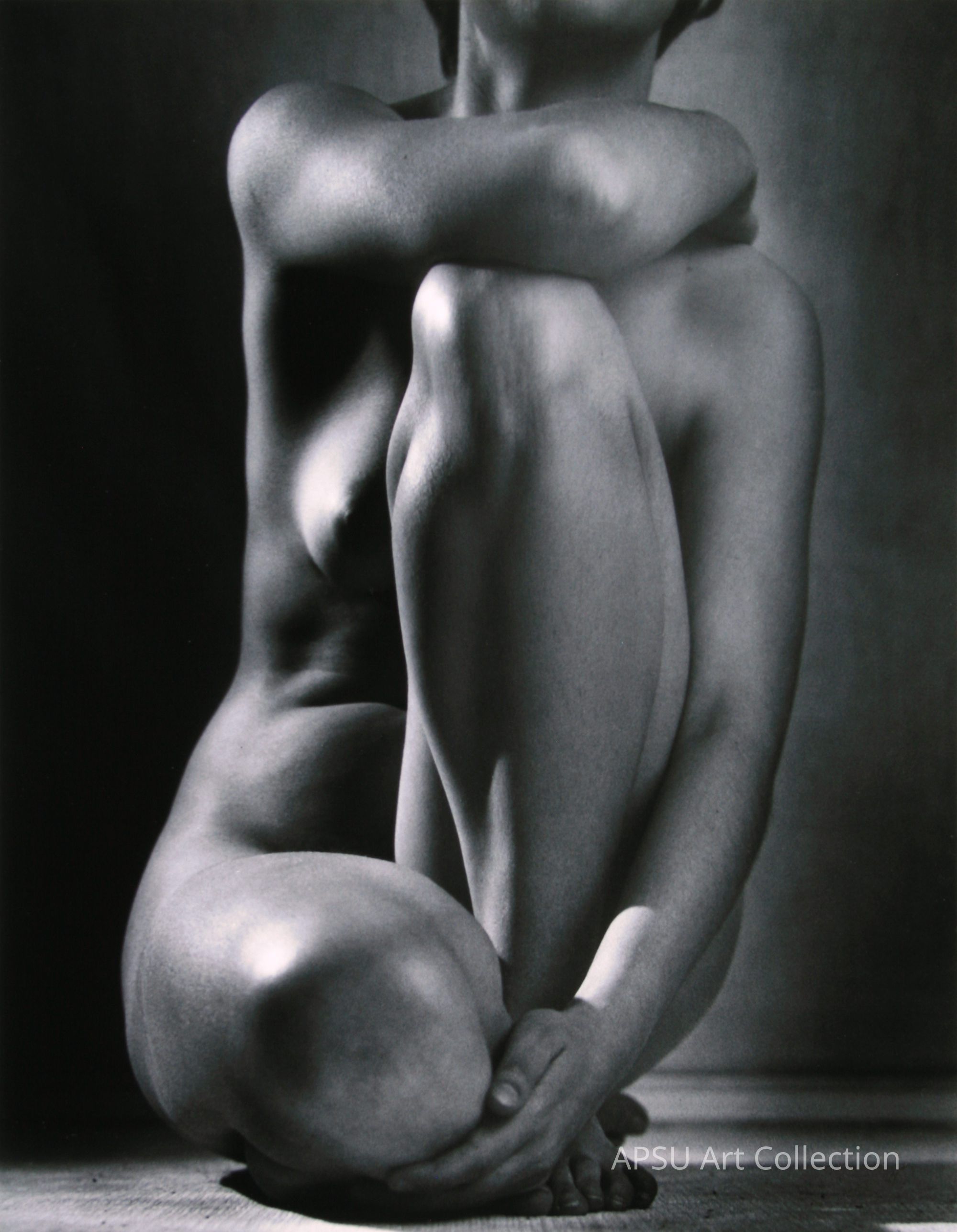 Black and white photograph of formal torso of female nude.