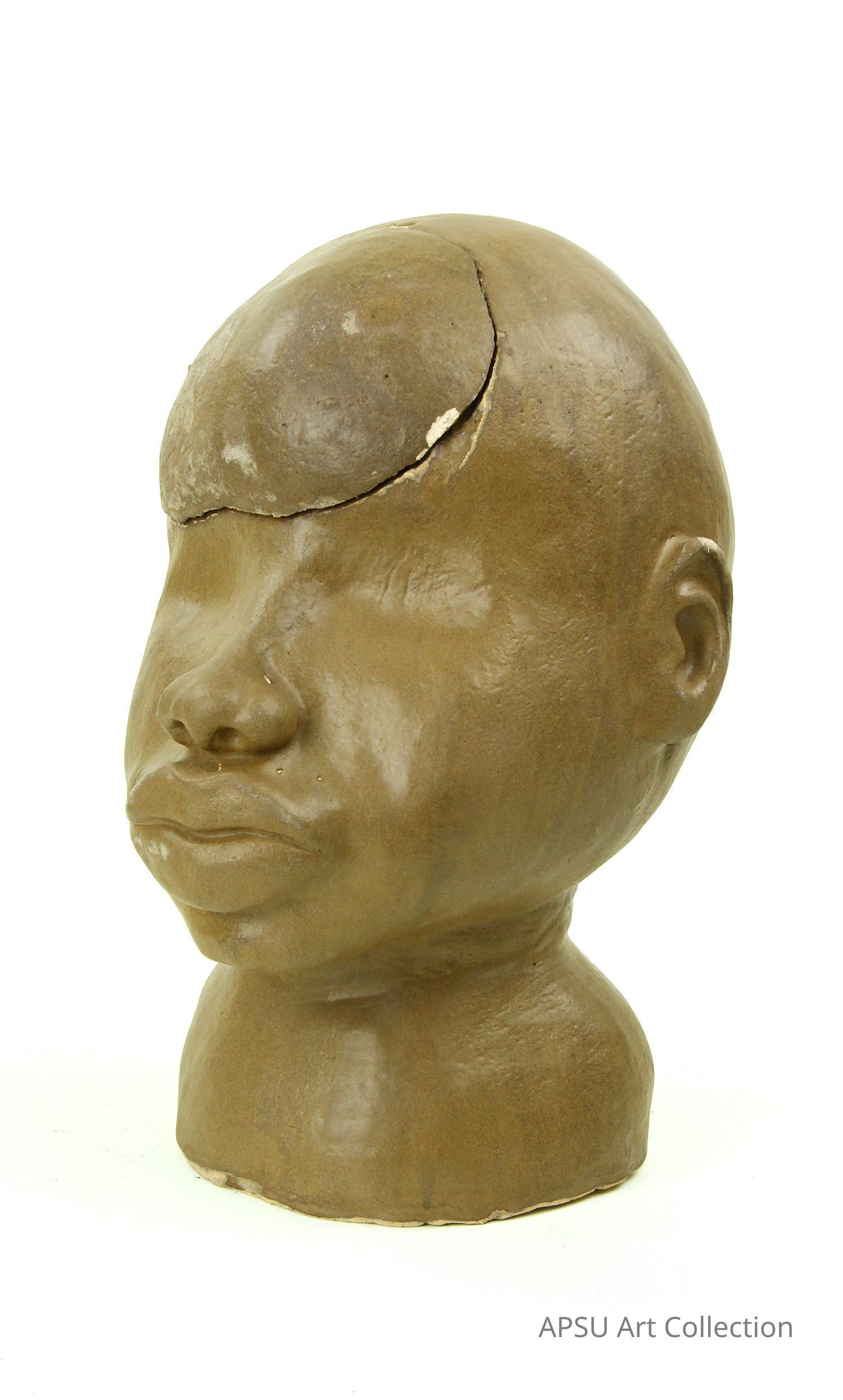 Cermic head with crack on forehead. Received Jim Diehr Ceramics awardCollection
