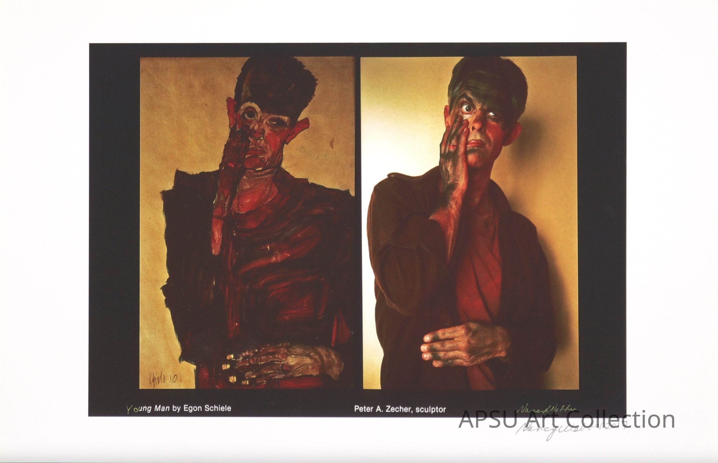 "Young Man" by Egon Schiele and a photograph that closely resembles it side by sideCollection