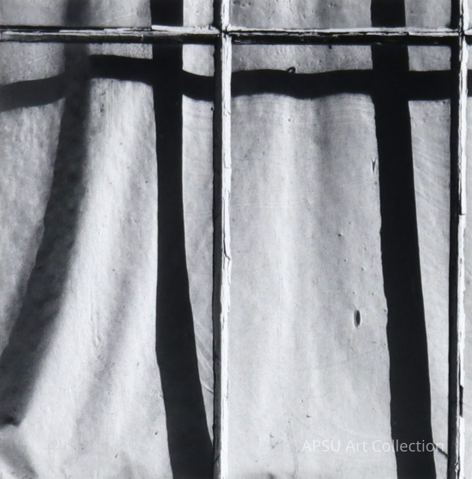 Black and white photograph of a church window that is casting shadows on a curtainCollection