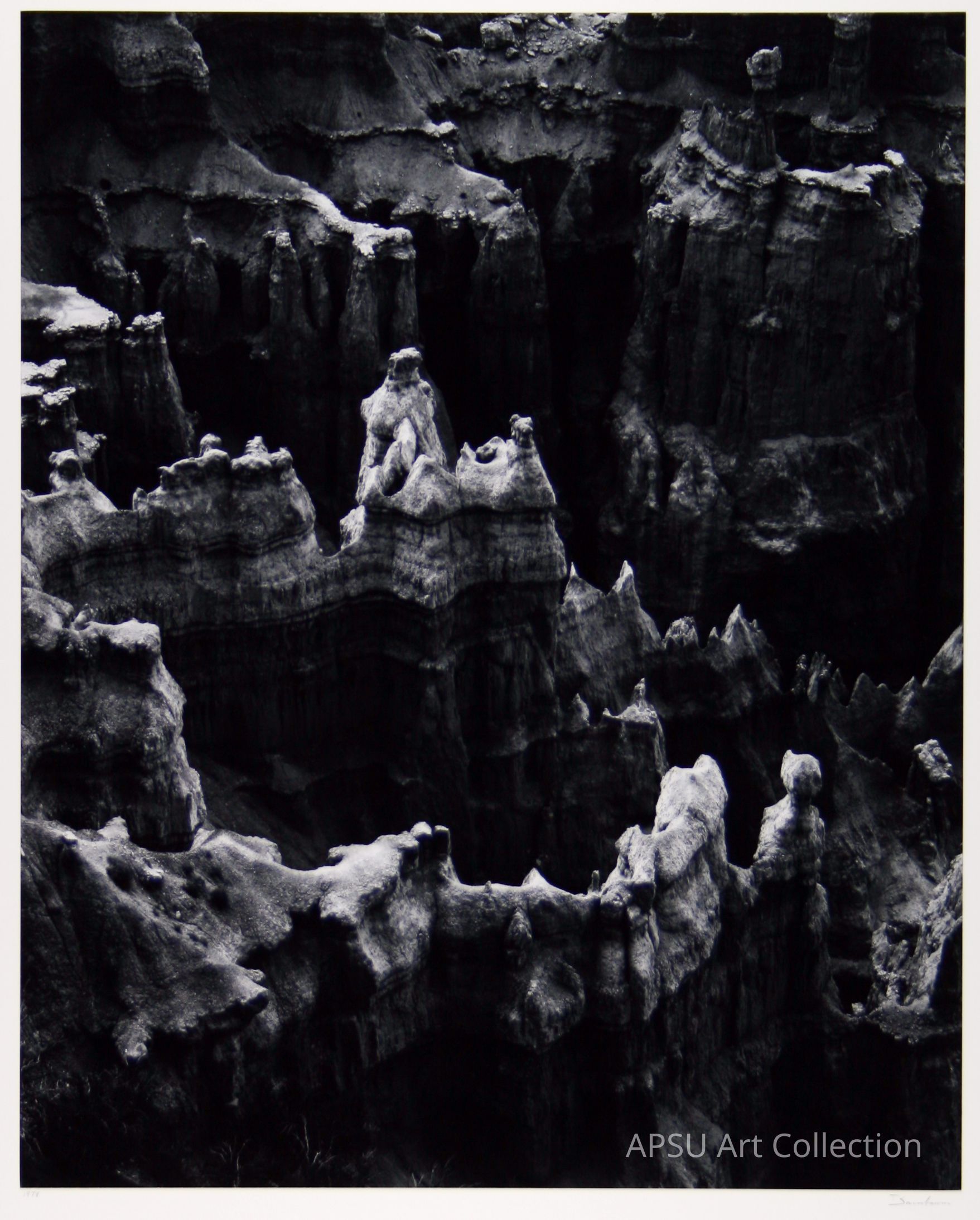 Black and white gelatin silver print of the tops of jagged cliffs, Bryce CanyonCollection