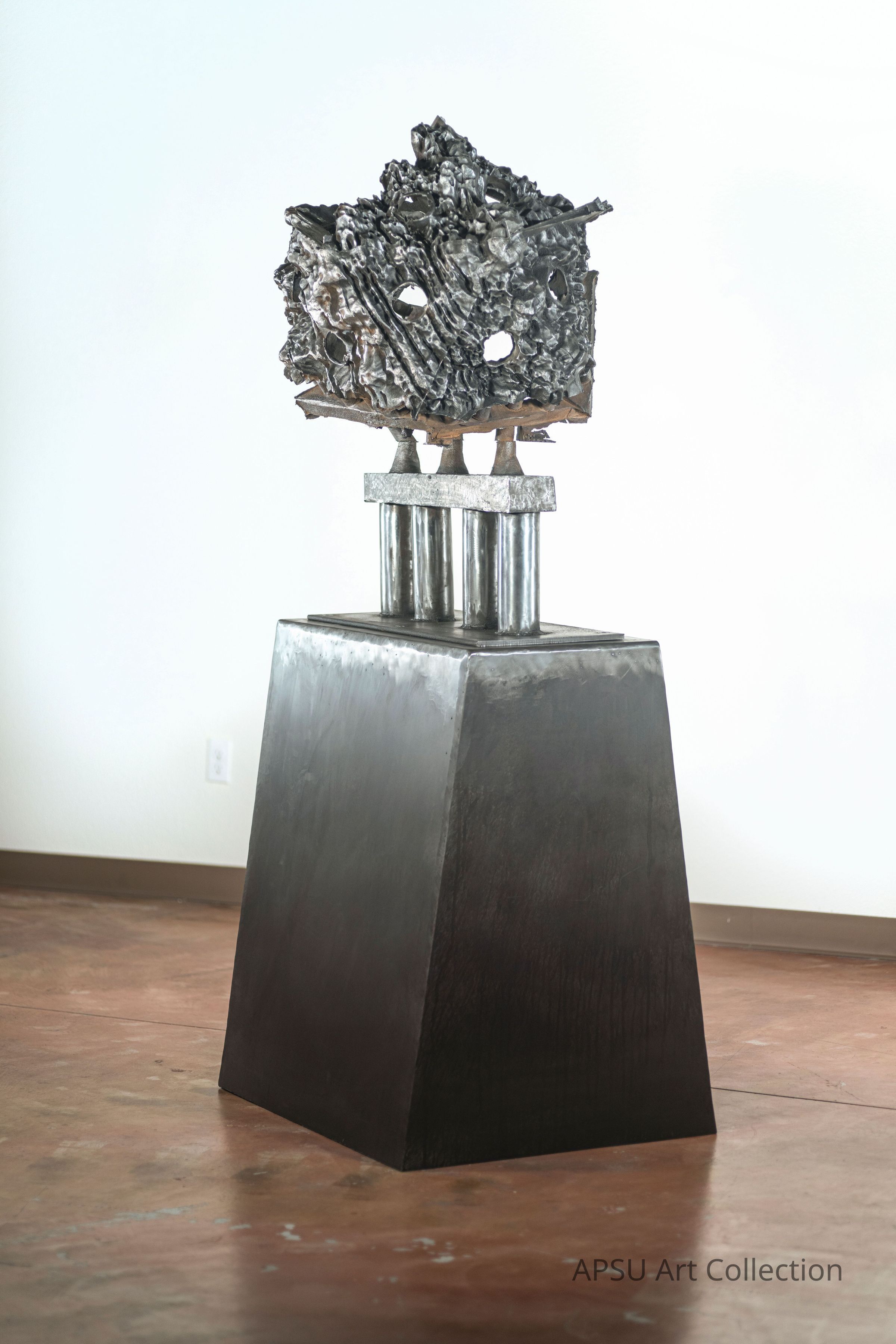 Cracked Earth is a twenty-sided sphere made up of identical triangles. The source data and image came from a black-and-white photograph of cracked earth. This source data was stretched and altered over the surface of a sphere in the modeling program Blender, resulting in a landscape of fissures and mountains. Next, a duplicate layer opposite the surface layer was created. Both layers were split into twenty sections, and eleven of the pair sections were molded in resin sand and assembled as one mold with an external gating system, which was also built in resin sand. This project was molded and cast at Sloss Historic Furnaces in Birmingham, AL, during the National Conference on Cast Iron Art and Practices in 2019.Type of Sculpture