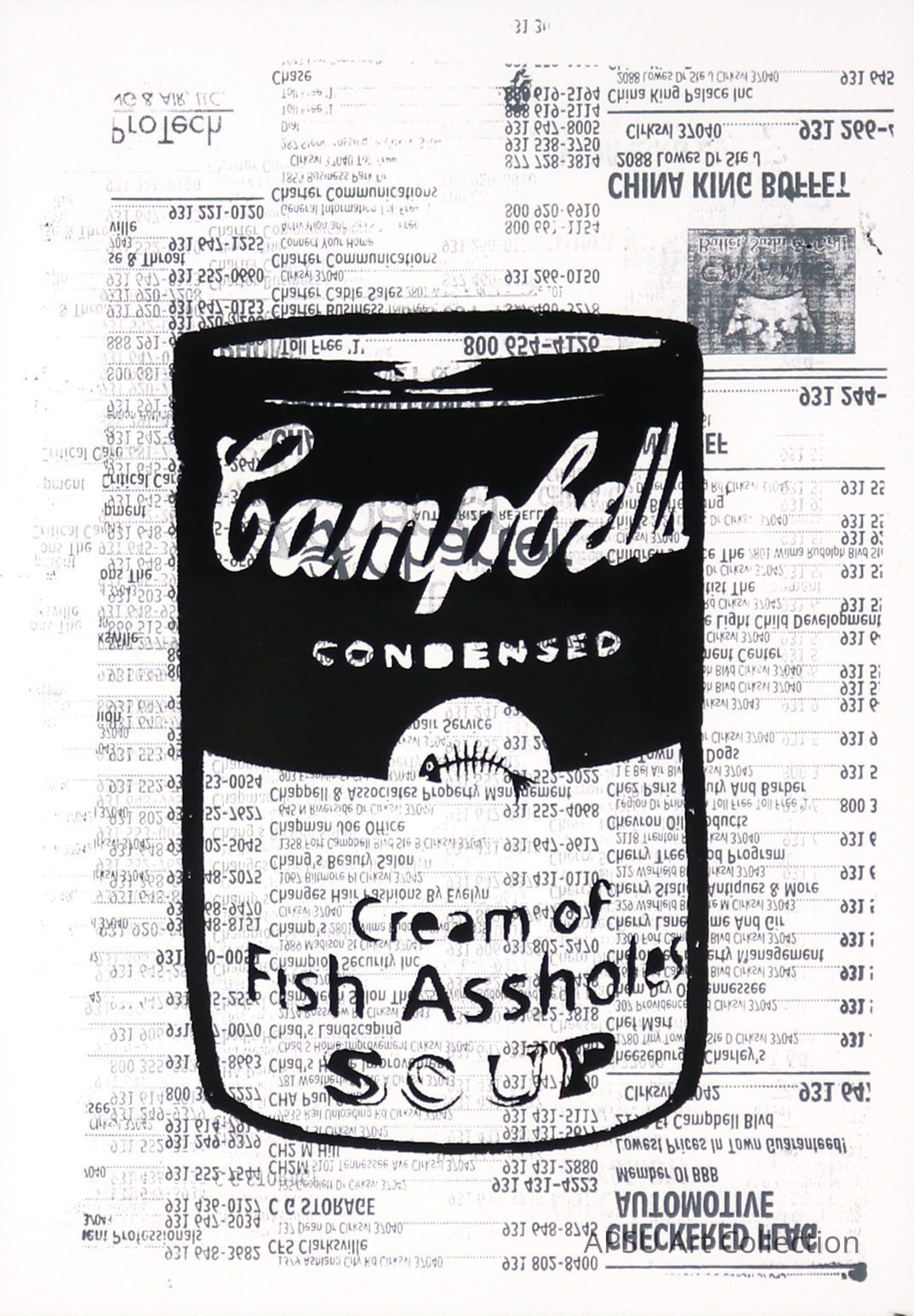 Sophia Eisenbart, "Cream of Fish-assholes Soup" mixed-media screenprint, 2015 Student Art Show purchase awardType of Print