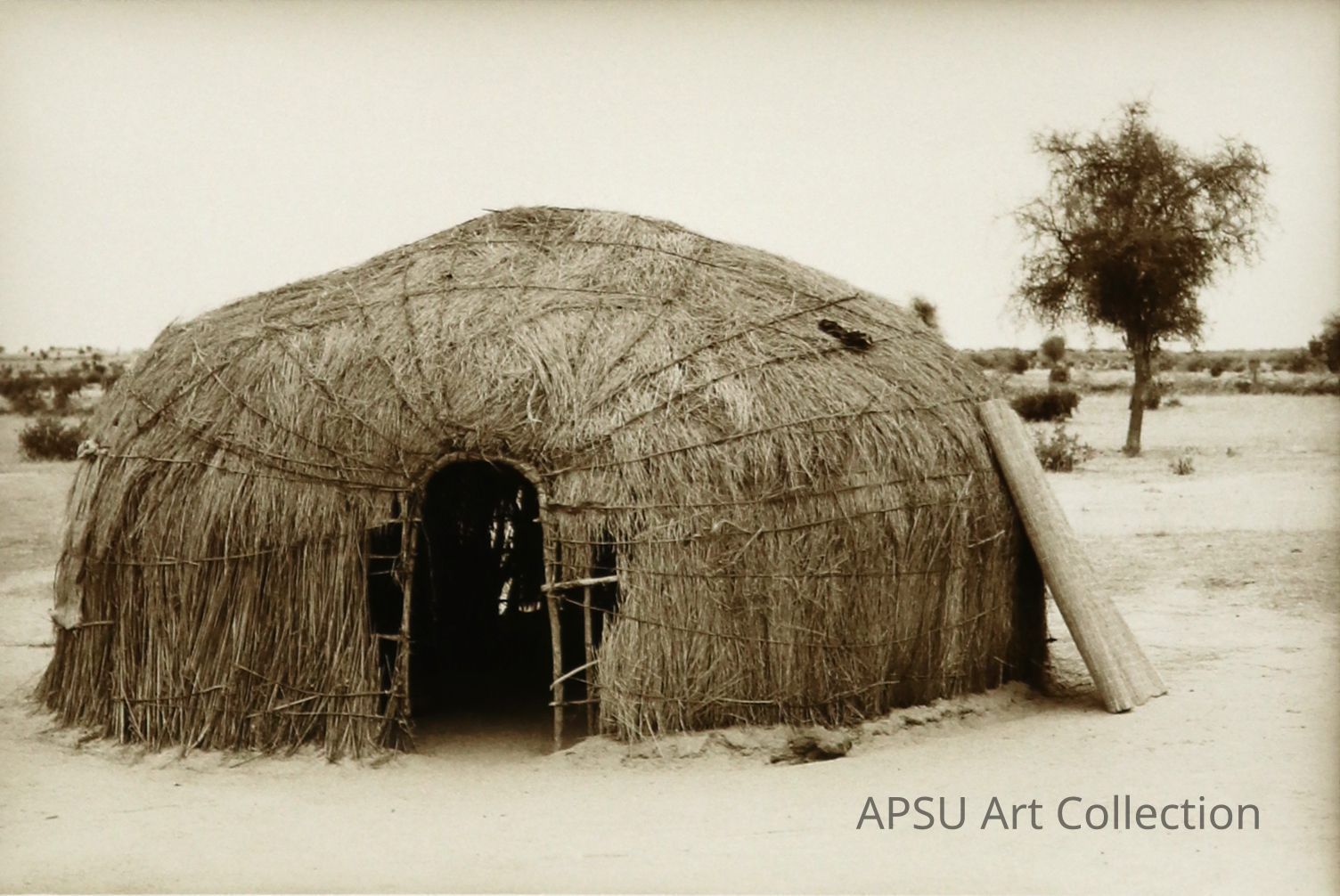 A sepia toned photograph of a Fulani hut in Sengal.Collection