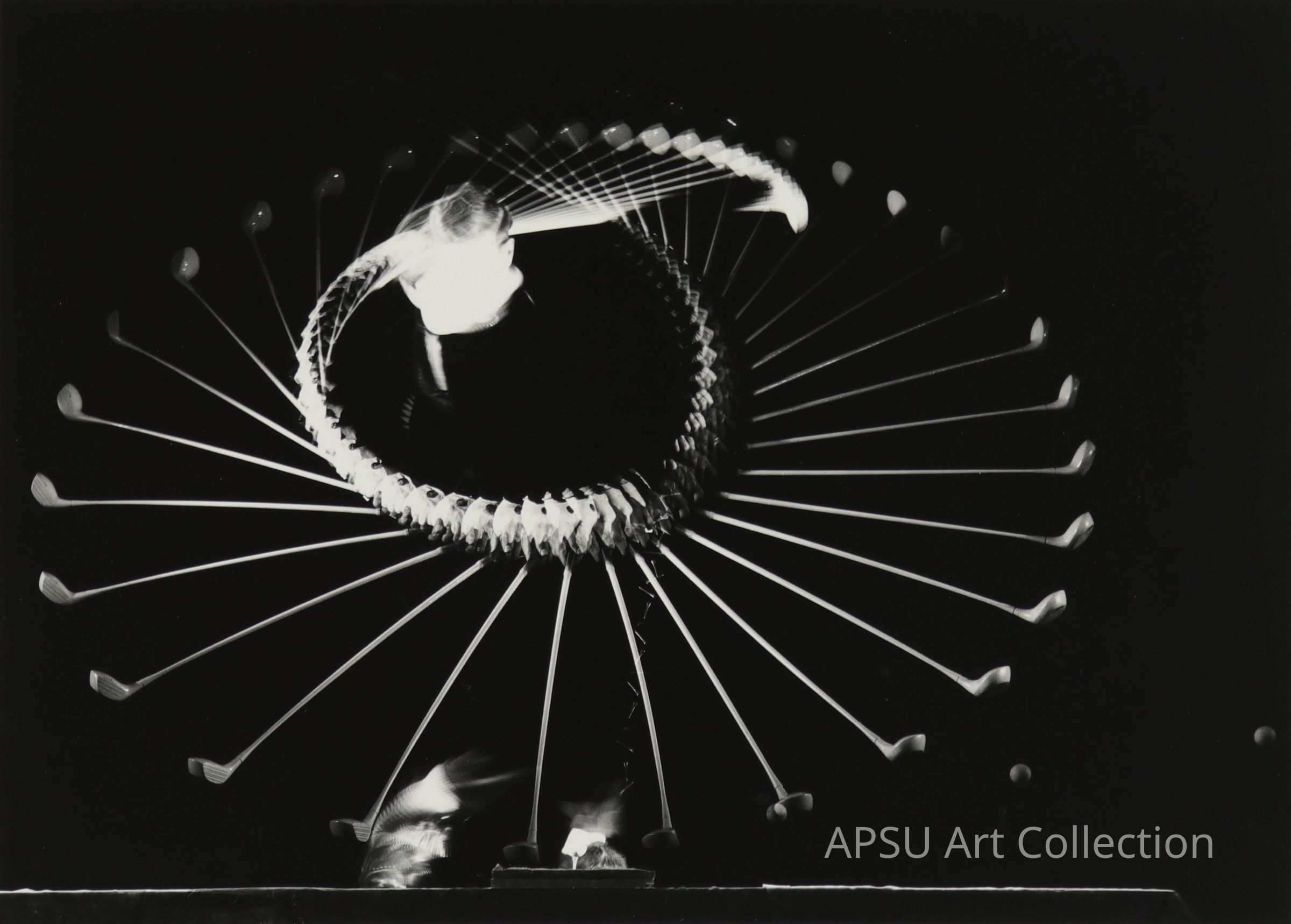 Black and white photograph of a golf club being swungCollection