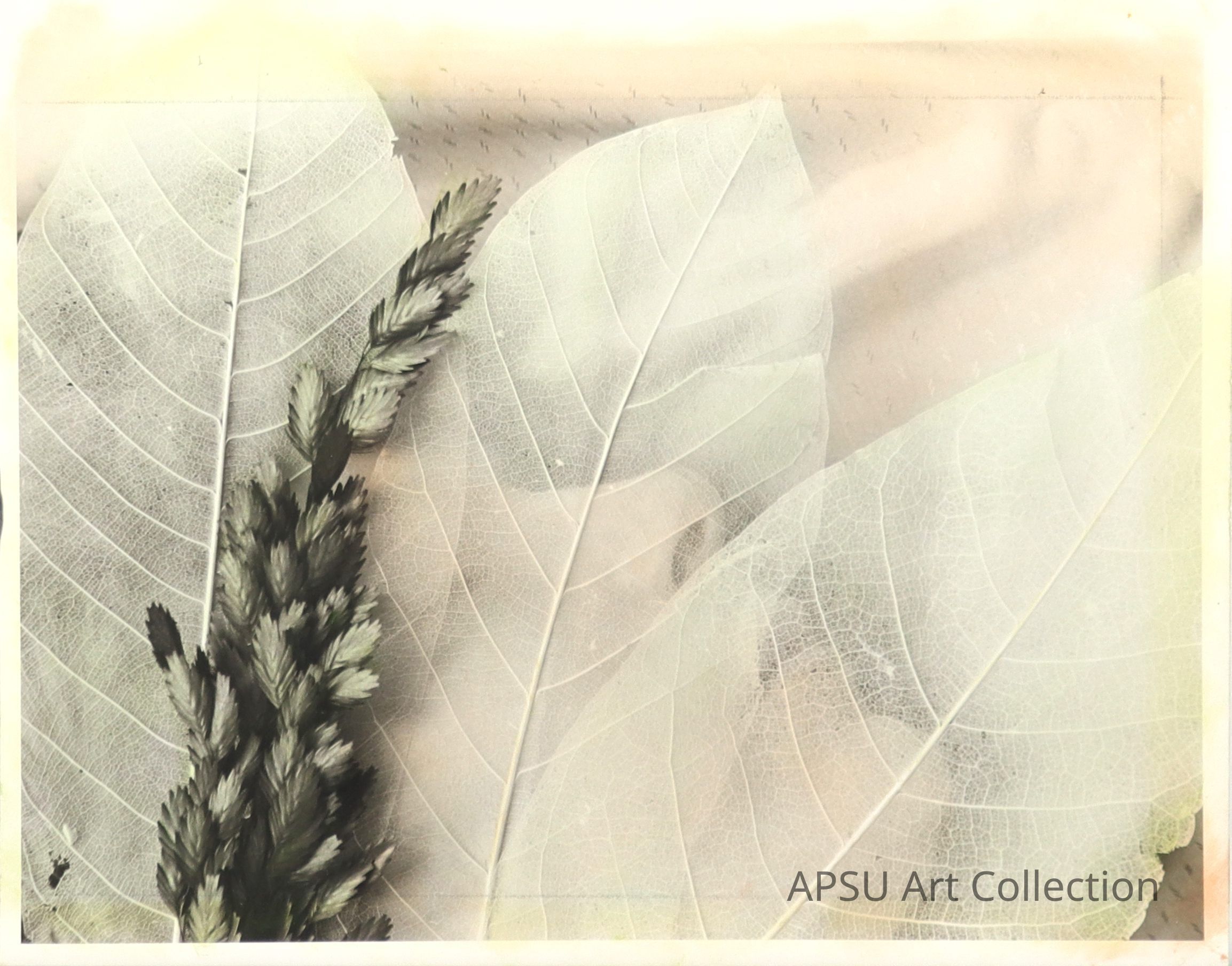 Hand colored double exposure of female face with leaves. Gelatin Silver Print.Collection