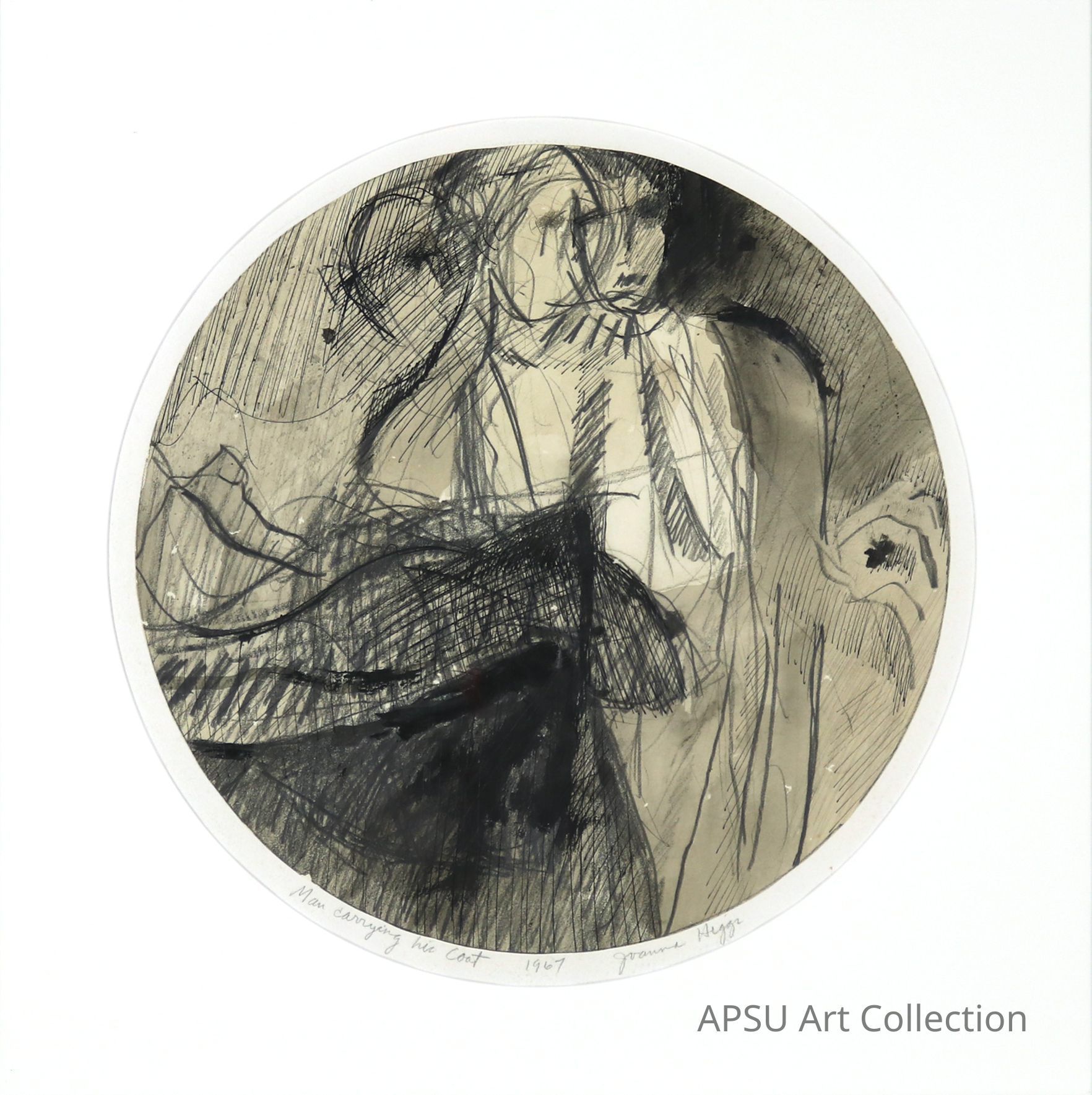 Joanne Higgs, mixed-media drawing, "Man Carrying His Coat"Type of Drawing