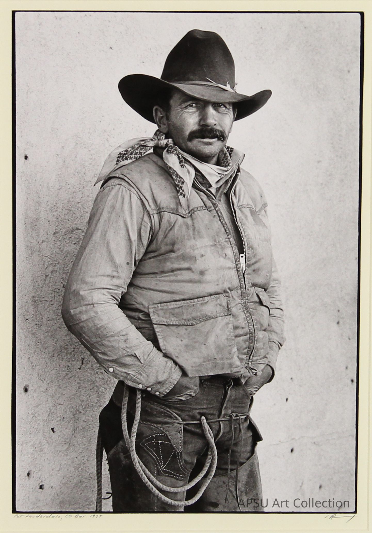 Black and white portrait of man dressed in Western attire. Figure is looking directly at camera.Collection