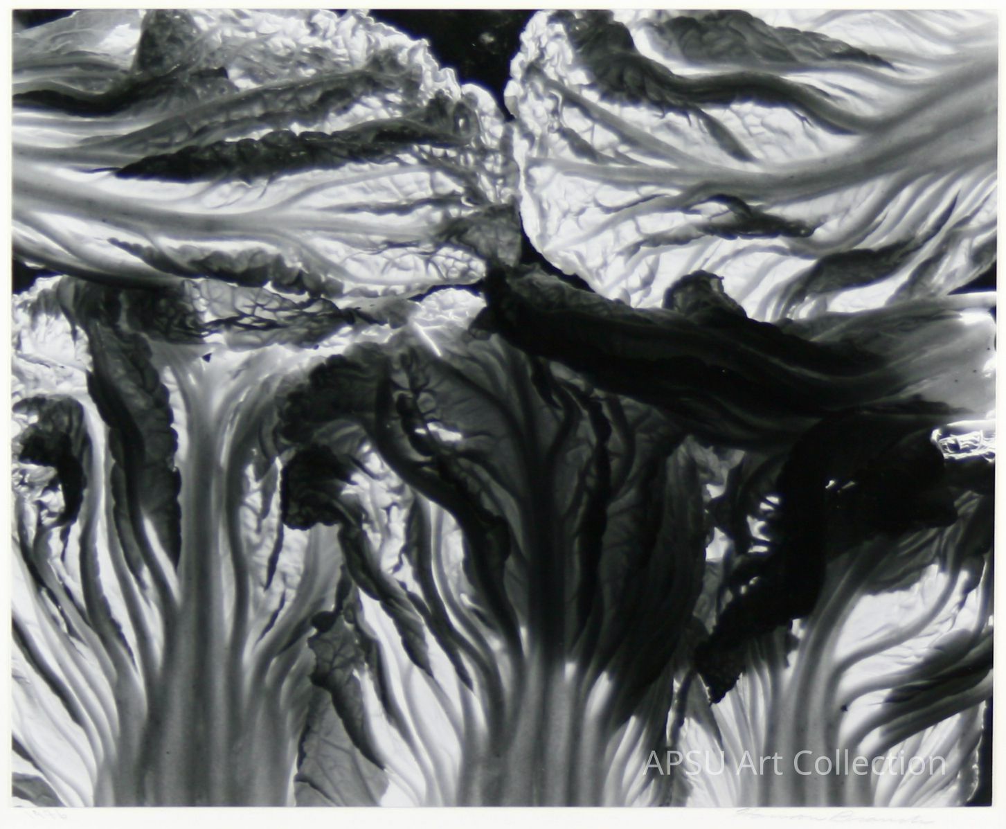 Black and white gelatin silver print of lettuce leaves illumintated from behind, Corvallis, Oregon, 1976Collection