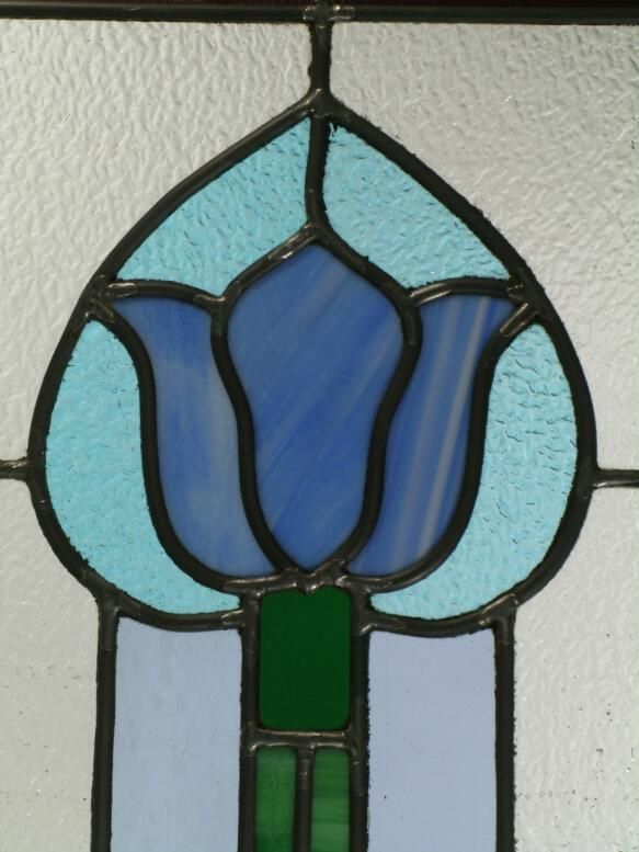 One of a Pair. Tulip Design with Opalescent and Rolled Glass Border.