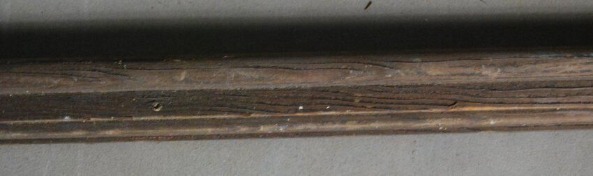 One lot of four interior picture rail moldings, decorated with gesso. Compound molding profile. Original finish varnished. Inscriptions or Markings: Manufacturer: Place of Manufacturer: Design motif: Style: Finish: Original finish Varnished