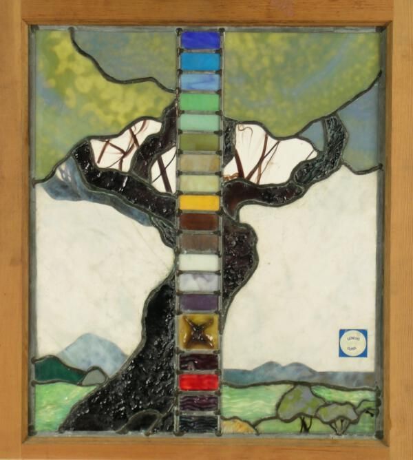 Tree Design with Mountain Landscape; Sample Color Ladder; Plated Glass