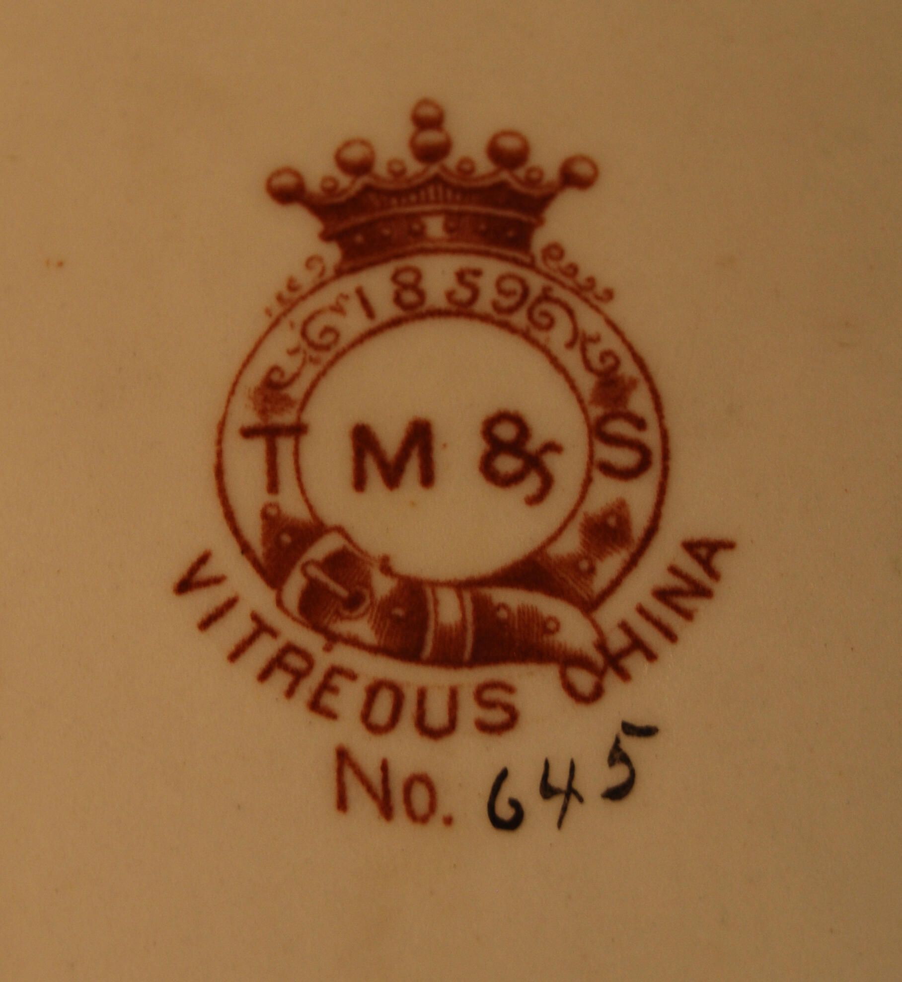 Inscriptions or Markings: "1859 T. M. & S. Vitreous China No. 645" & "78-12-98"