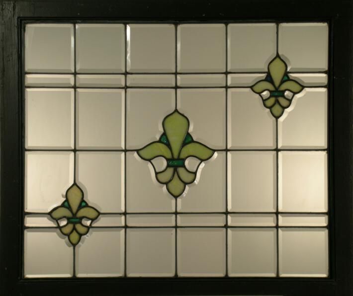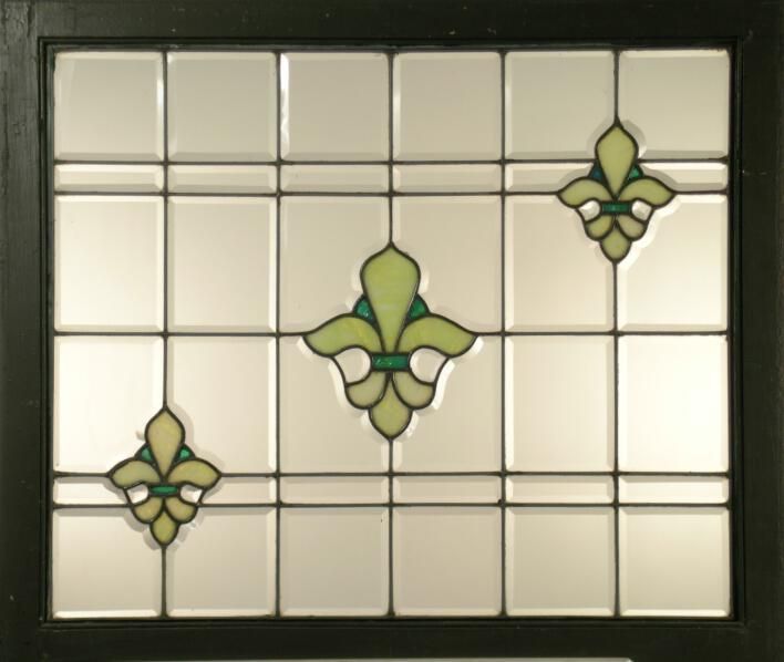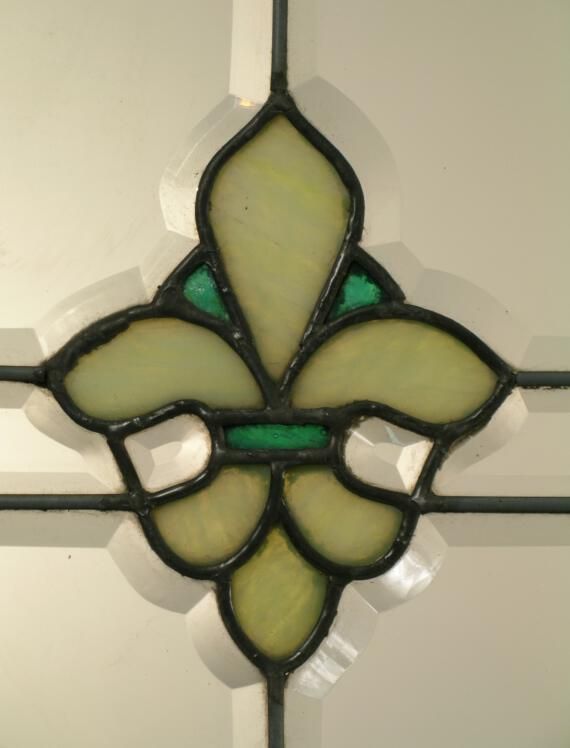 Material: Beveled Glass; Opalescent Green Fleur de Lis (3); Rolled Opalescent Green Accent.Lexicon