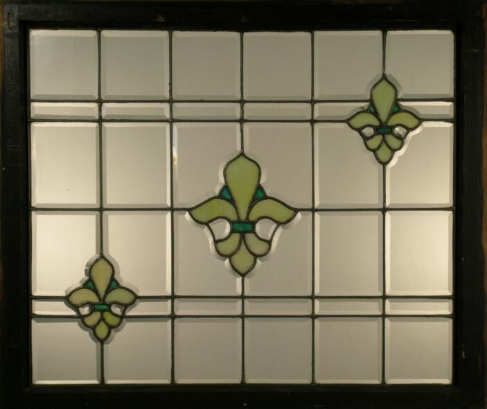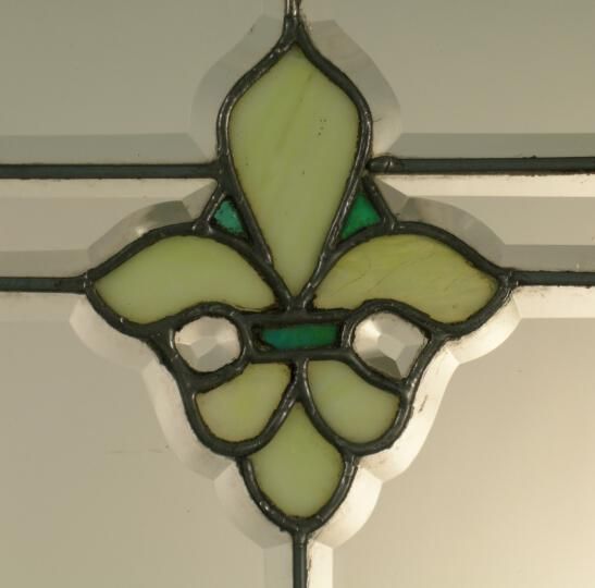 Material: Beveled Glass; Opalescent Green Fleur de Lis (3); Rolled Opalescent Green Accent.Lexicon