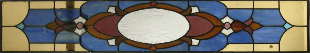 Transom (matches sidelight) with oval shield center; fleur de lis