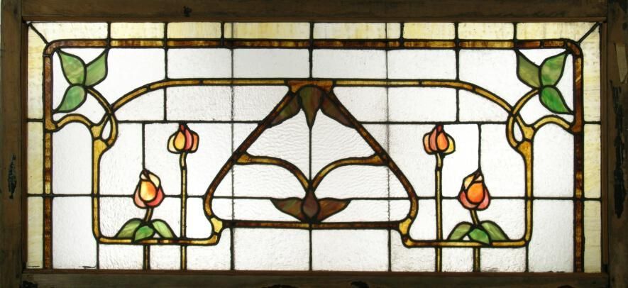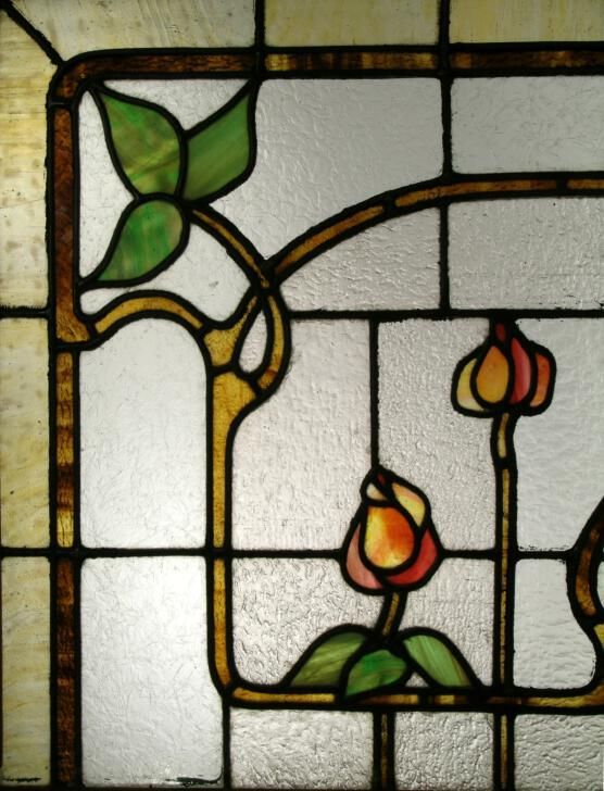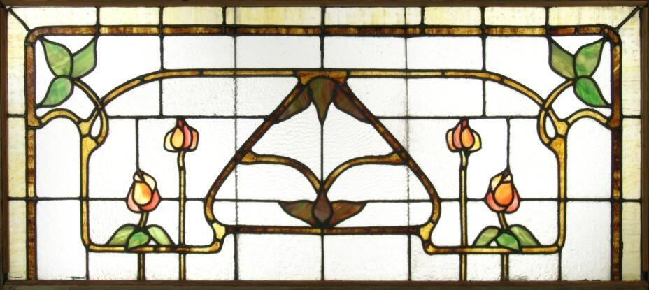 Transom, leaded. Art Nouveau Style; Stylized Roses.