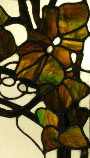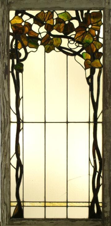 Material: Leaded Glass; Muffled Glass; Kokomo Glass (in vines and grapeleaves). Fir sash.Lexicon
