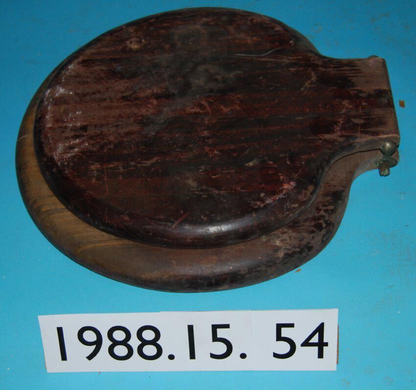 Hardwood. Toilet-mounted seat and lid. Both constructed of tongue and groove joinery. Partial pivoting hinges. Ovoid shape. Inscriptions or Markings: Manufacturer: Place of Manufacture: Design motif: Style: Finish: Varnished