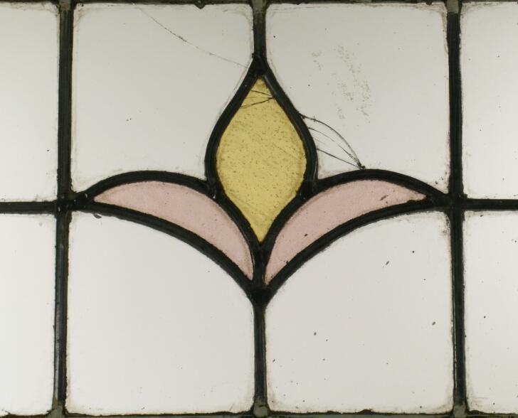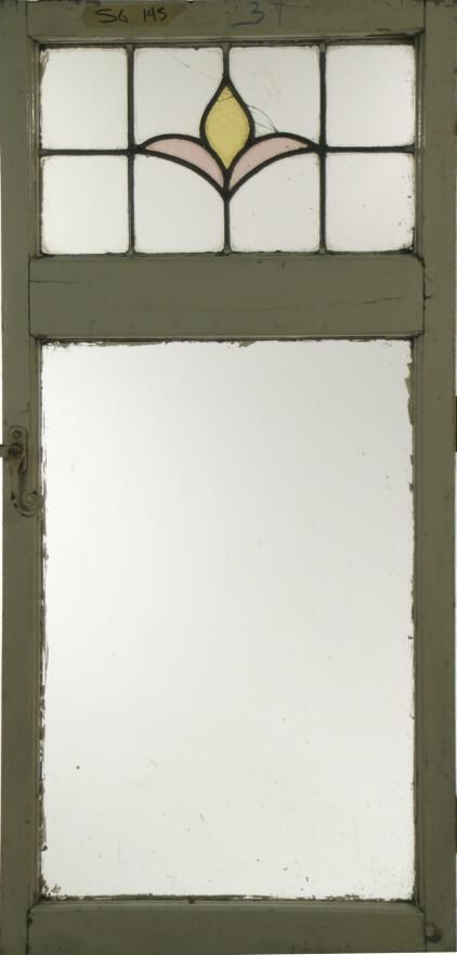 Cabinet / casement window. Top panel of leaded glass with flower design.