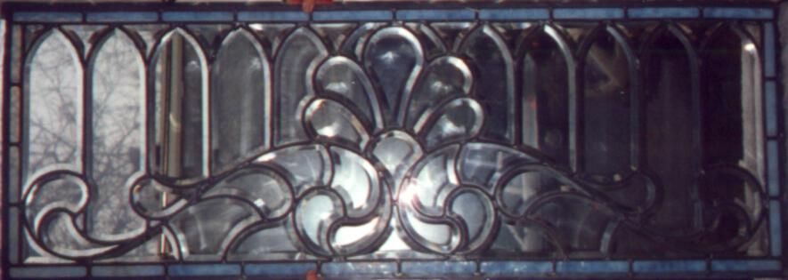 Transom. Central Fleur de lis; Gothic panels. No sash.