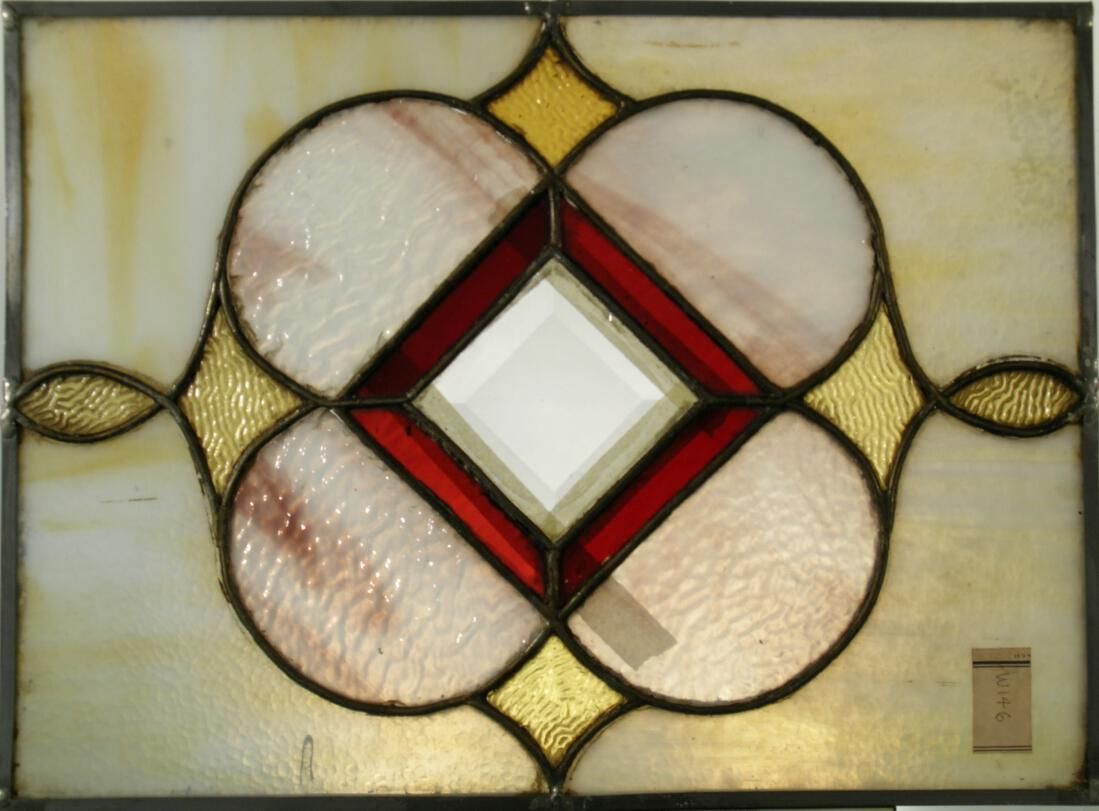 One of a pair, see 1988.1.207. Central diamond beveled glass; surrounded by 4 half circles.