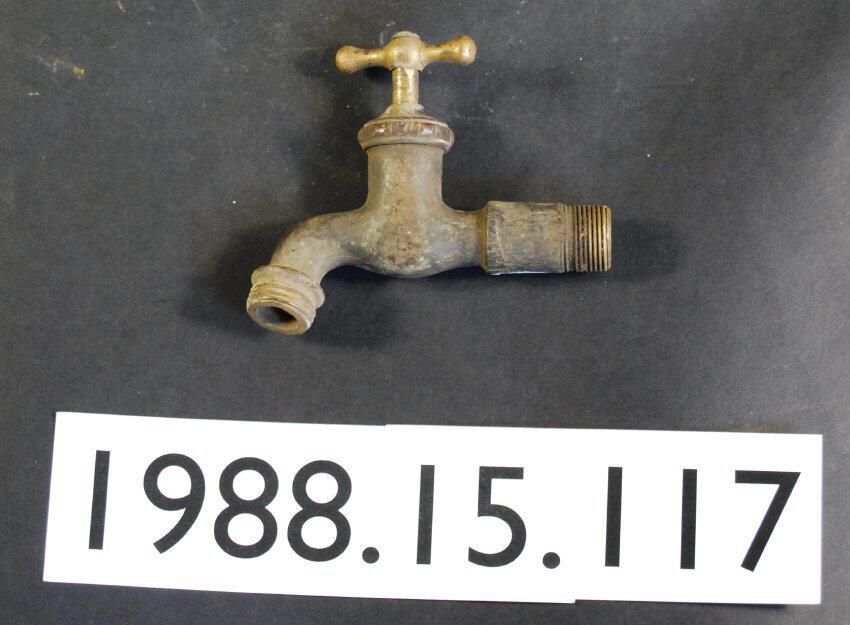 Brass faucet with threaded spout and "T" handle. Inscriptions or Markings: Manufacturer: Place of Manufacture: Design motif: Style: Finish: None