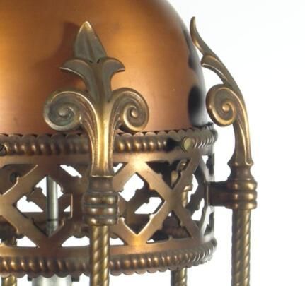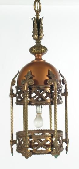 European Revial style heavy cast bronze ceiling pendant; Fleur de lis