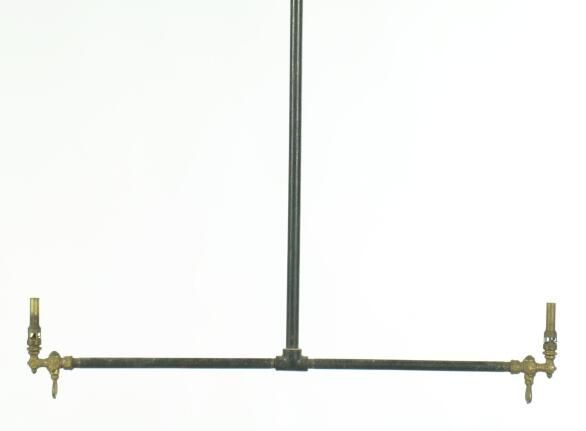 Utilitarian / Industrial style cast iron ceiling chandelier. 2 burner made of pipe, no ornamentation.