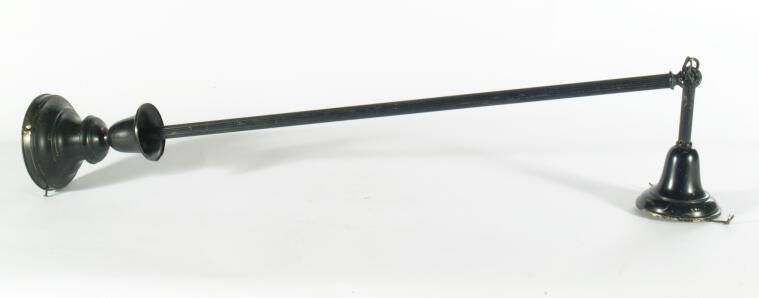 Classic Vernacular brass ceiling pendant. Shades: 6" electric Fuel: Electric Finish: Black Reeded rod.
