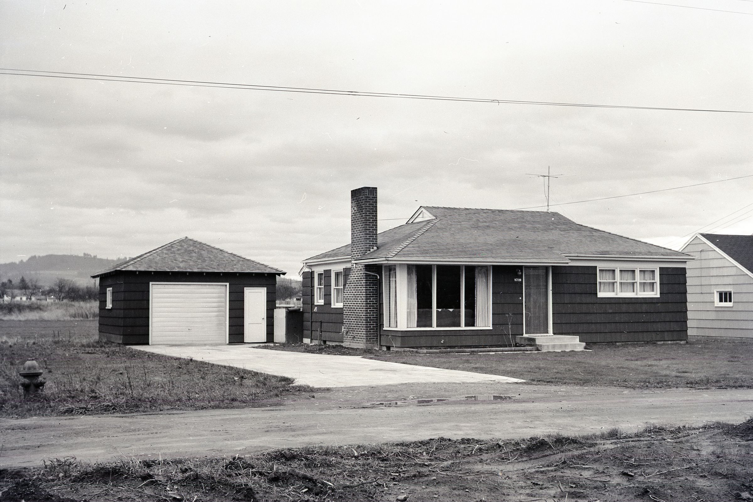 445 individual black and white medium format film negatives in protective sleeves, many of which include house addresses. Possibly taken by or on behalf of Portland realtor Robert Johnstone between 1952 - 1955. All photos are in the Portland area.