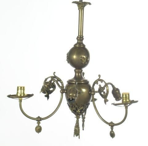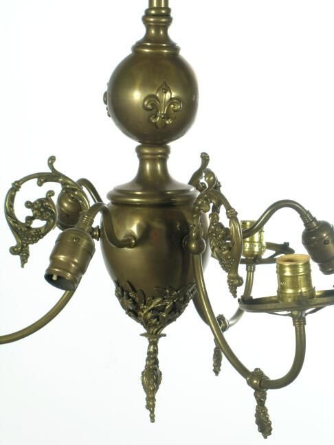 Empire style brass ceiling chandelier. Shows influence of Louis 14 - 16.