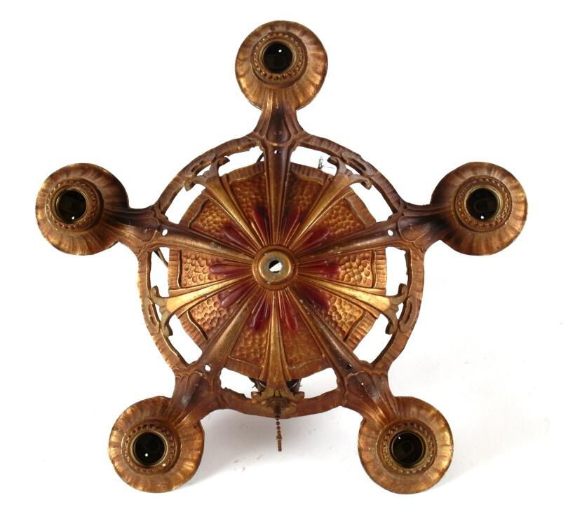 Art Deco pot metal ceiling flush. 5 lights Shades: none Fuel: Electric Finish: Polychrome