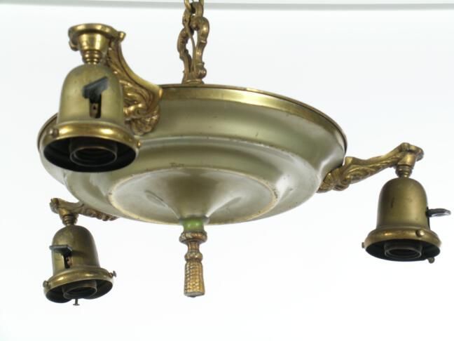 3 light sockets; Cast brass arms; closed pan; G.E. socket keys.