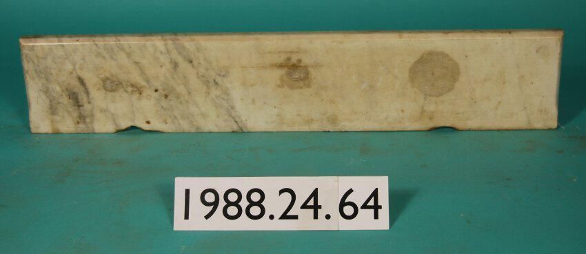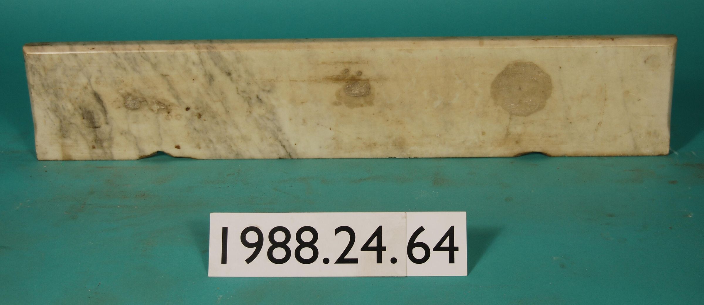Rectangular white / gray veined polished marble slab. Three edges are rounded.