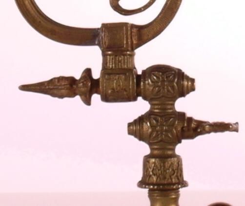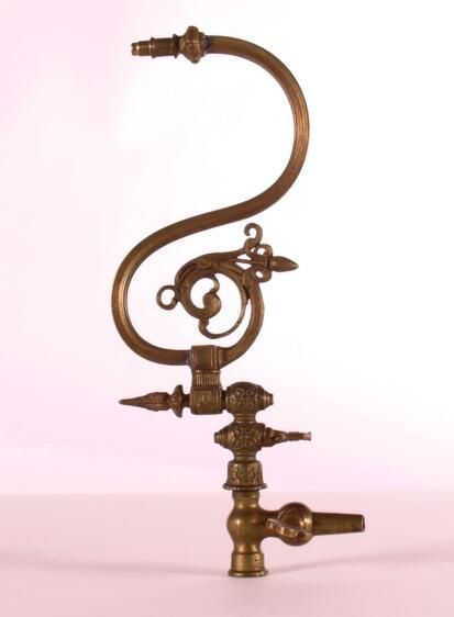 Victorian Vernacular style cast brass wall bracket. Shades: none Fuel: Gas Finish: Polished G.M. Clark & Co. - on gas valve.