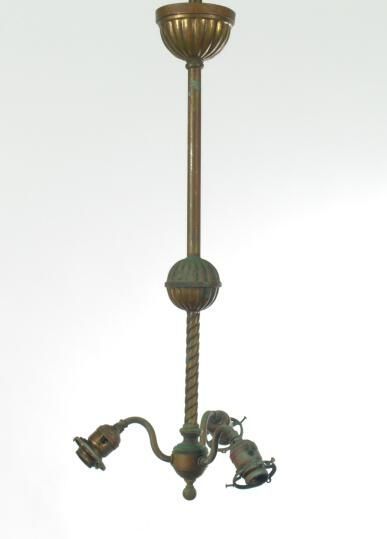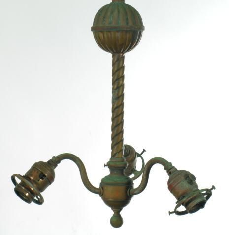 Victorian Vernacular style brass ceiling chandelier. 3 arms; melon motif.