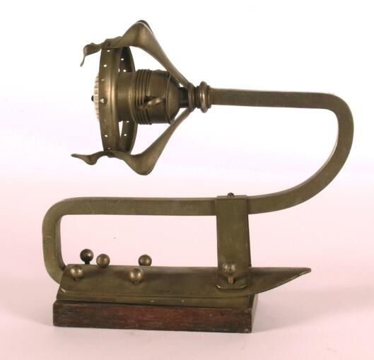 Arts & Crafts style wall bracket. Possibly nickel; one arm. Art Nouveau socket husks. Shades: None Fuel: Electric Finish: Brushed