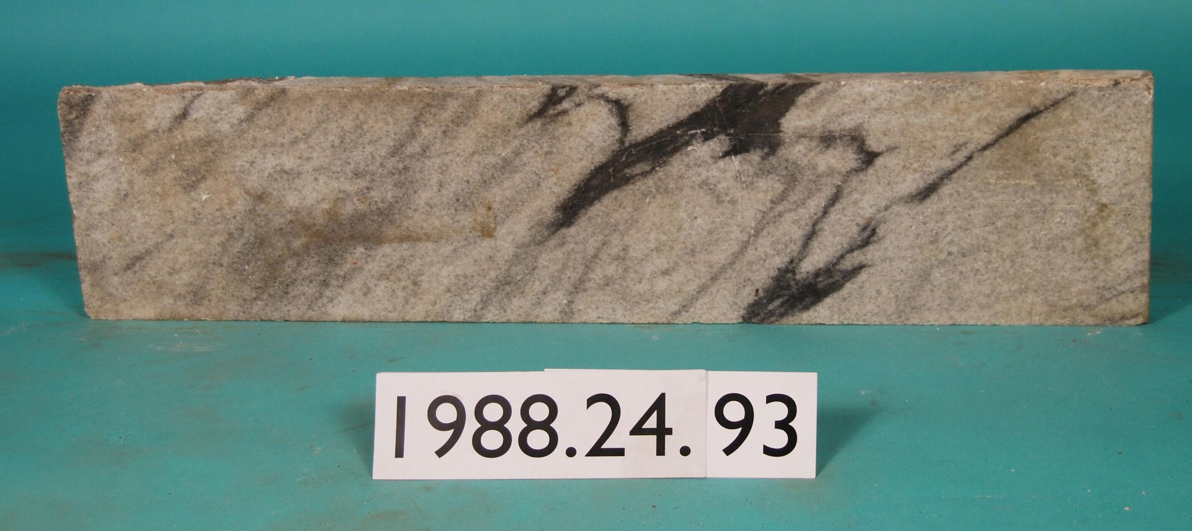 Rectangular gray / gray veined polished marble slab. Possible baseboard.