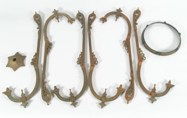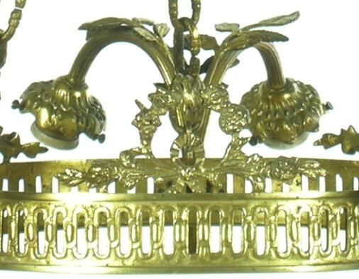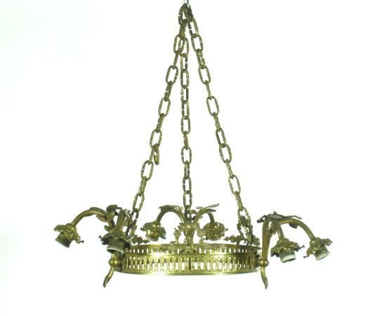 Ring with 3 arms, 2 lights on each arm. Hangs from 3 chains.