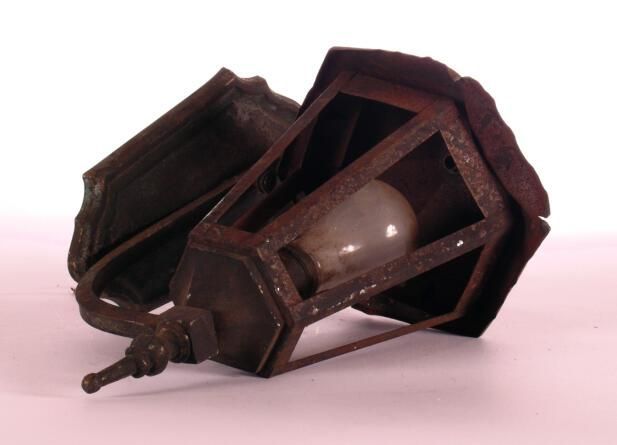 One of a pair with 1988.9.152 Storybook style pot metal wall bracket for exterior lanterns. Shades: Other Fuel: Electric Finish: Black
