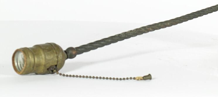 Victorian Vernacular brass Harp pendant fixture. Shades: Fuel: Gas Finish: Polished