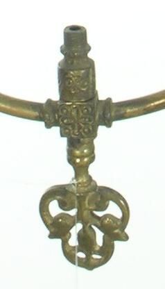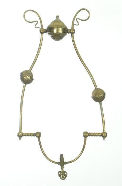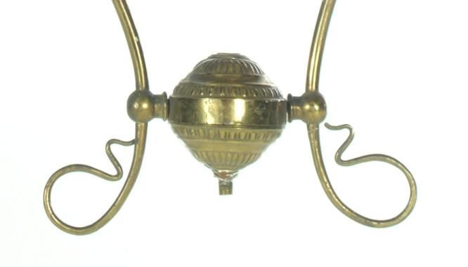 Victorian Vernacular brass ceiling pendant. Shades: Unknown Fuel: Gas Finish: Polished