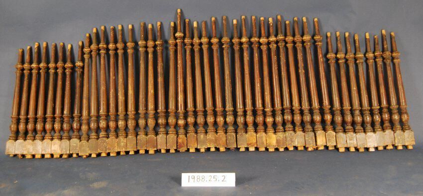 One lot of Forty-Two turned stair balusters. Ash wood. Varnished. Range of heights. Type: Inscriptions or Markings: Manufacturer: Place of Manufacture: . Design motif: Style: Finish: Varnished