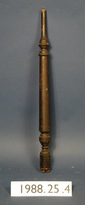 Single turned stair baluster. Dove-tailed tenon at bottom end. Possibly walnut, Dark brown varnished finish. Type: Inscriptions or Markings: Manufacturer: Place of Manufacture: . Design motif: Style: Finish: Varnished