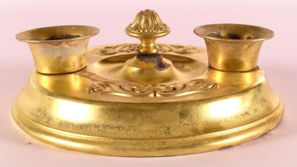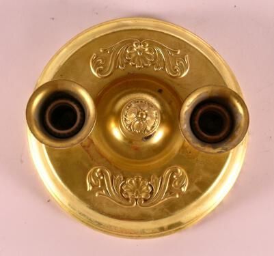 Classical / Beaux Arts stamped brass ceiling flush mount. 2 lights. Shades: Fuel: Electric Finish: Once Polychrome; other