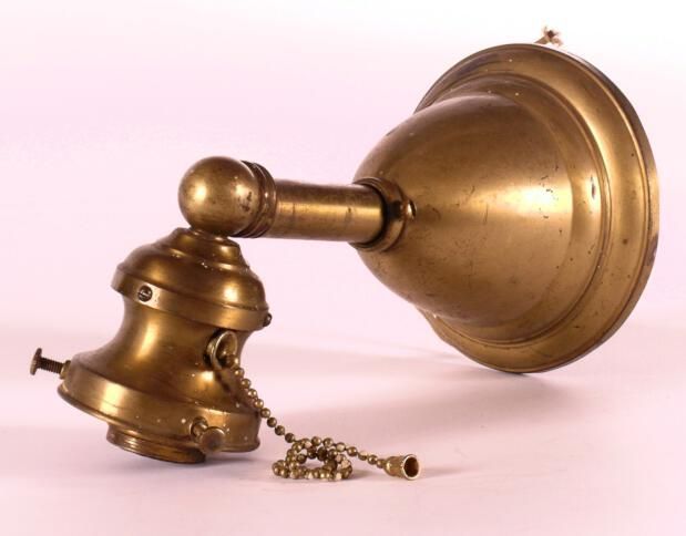 One of 3 with 1988.9.216 and .255 Classic Vernacular brass wall bracket. Pull chain socket. Shades: Fuel: Electric Finish: Brushed