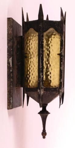 Old English style steel wall flush. Porch light; mottled amber glass. Shades: Other Fuel: Electric Finish: Black
