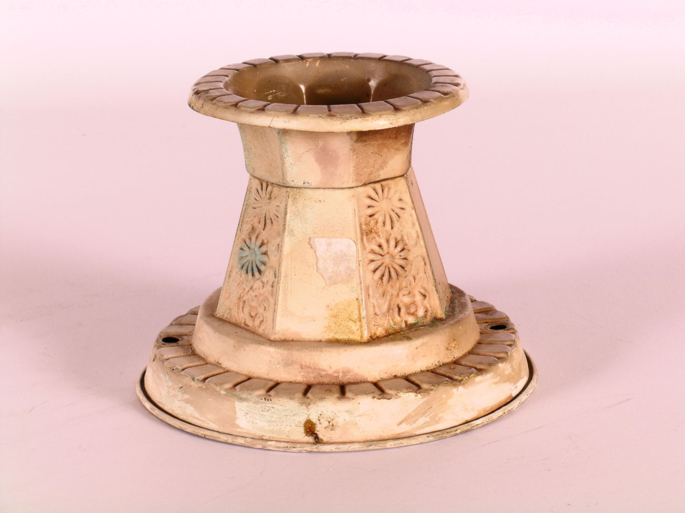 European Revival brass ceiling flush. Shades: 2 1/4" electric Fuel: Electric Finish: Polychrome
