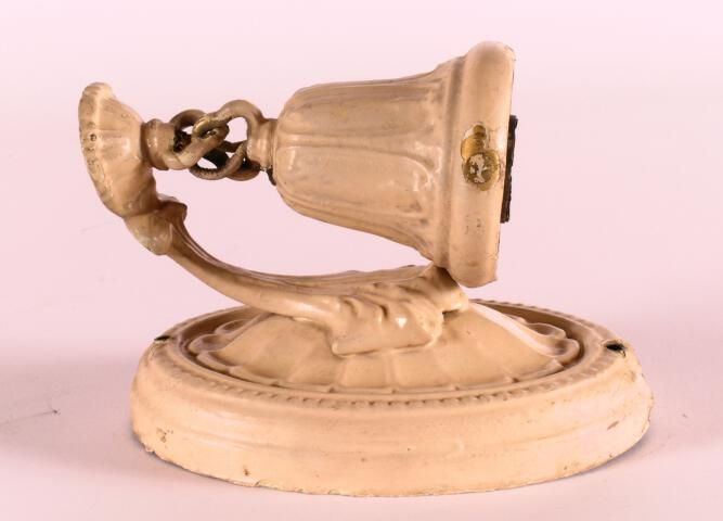 One of two with 1988.9.244 Colonial Revival style brass wall flush. 1 pendant; pattera motif; beading. Shades: 2 1/4" electric Fuel: Electric Finish: Other (painted)